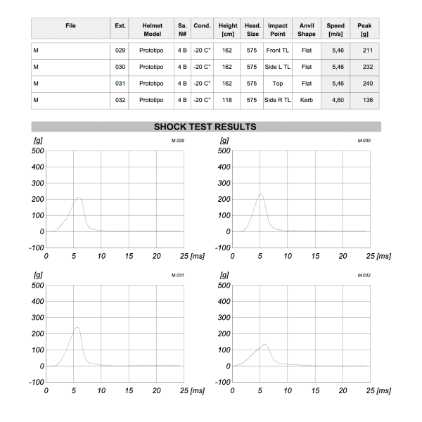 For each test, we received impact data in the form of a curve representing the absorption qualities of our helmet design. While the results were promising, they were still failing in certain configurations.