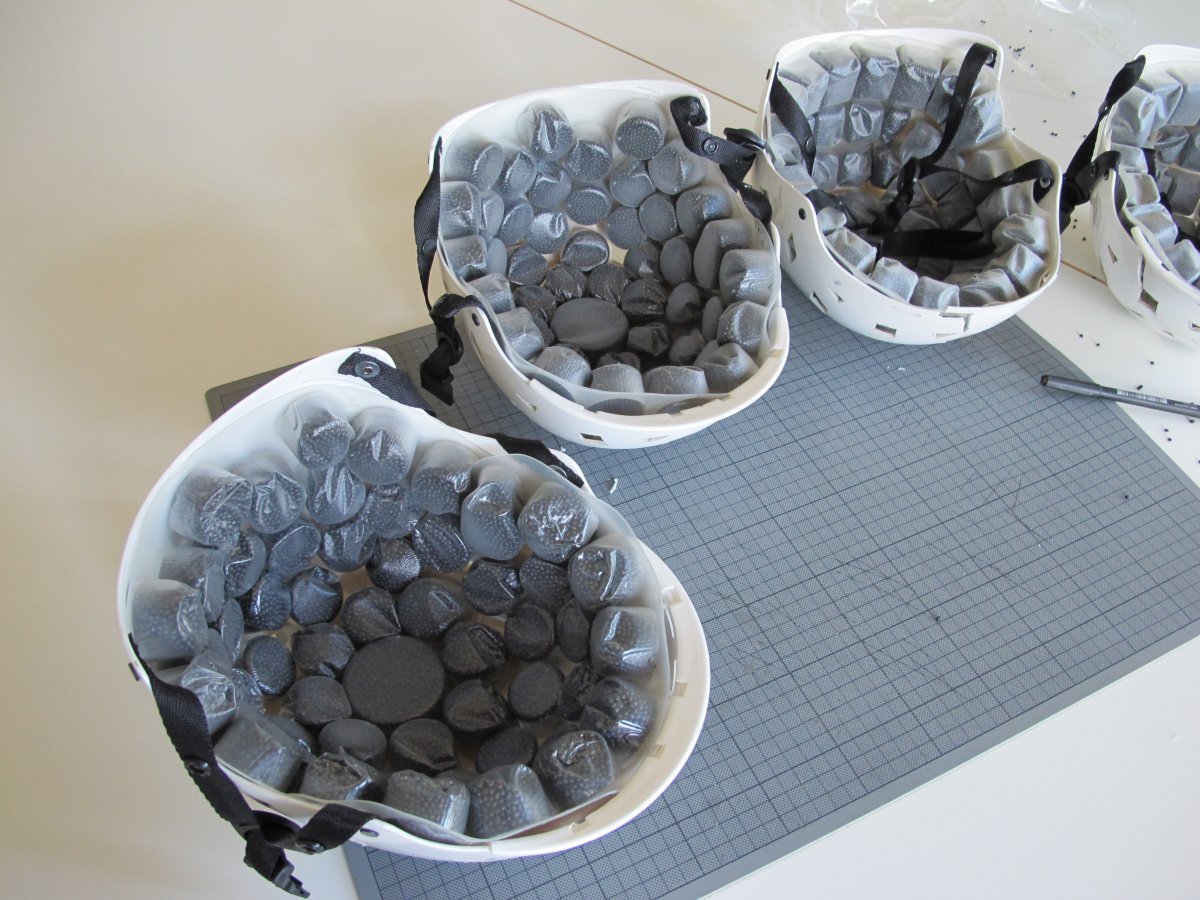We improved the performance of the liner through several rounds of testing. Since the procedure involved testing at different temperatures, we had discovered that the cushion of a hot helmet would perform slightly worse than a frozen one.
