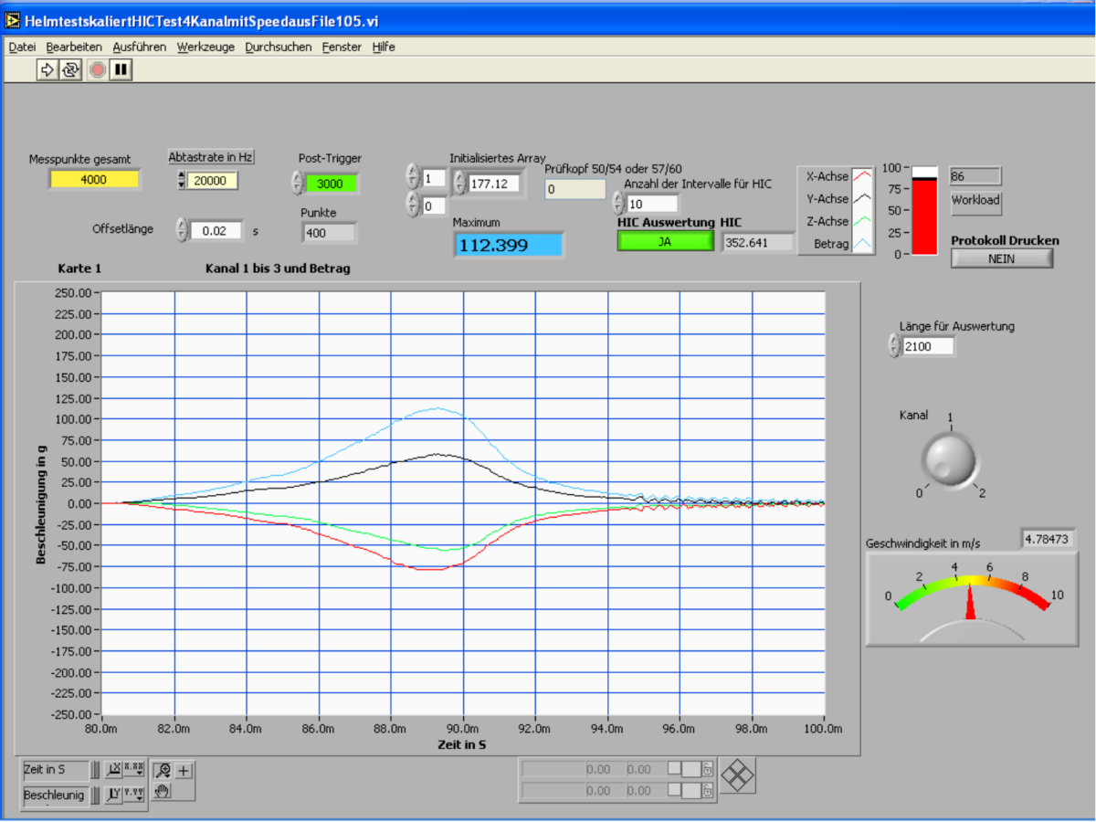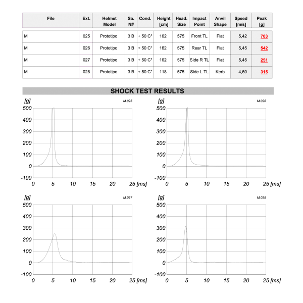 For each test, we received impact data in the form of a curve representing the absorption qualities of our helmet design. While the results were promising, they were still failing in certain configurations.